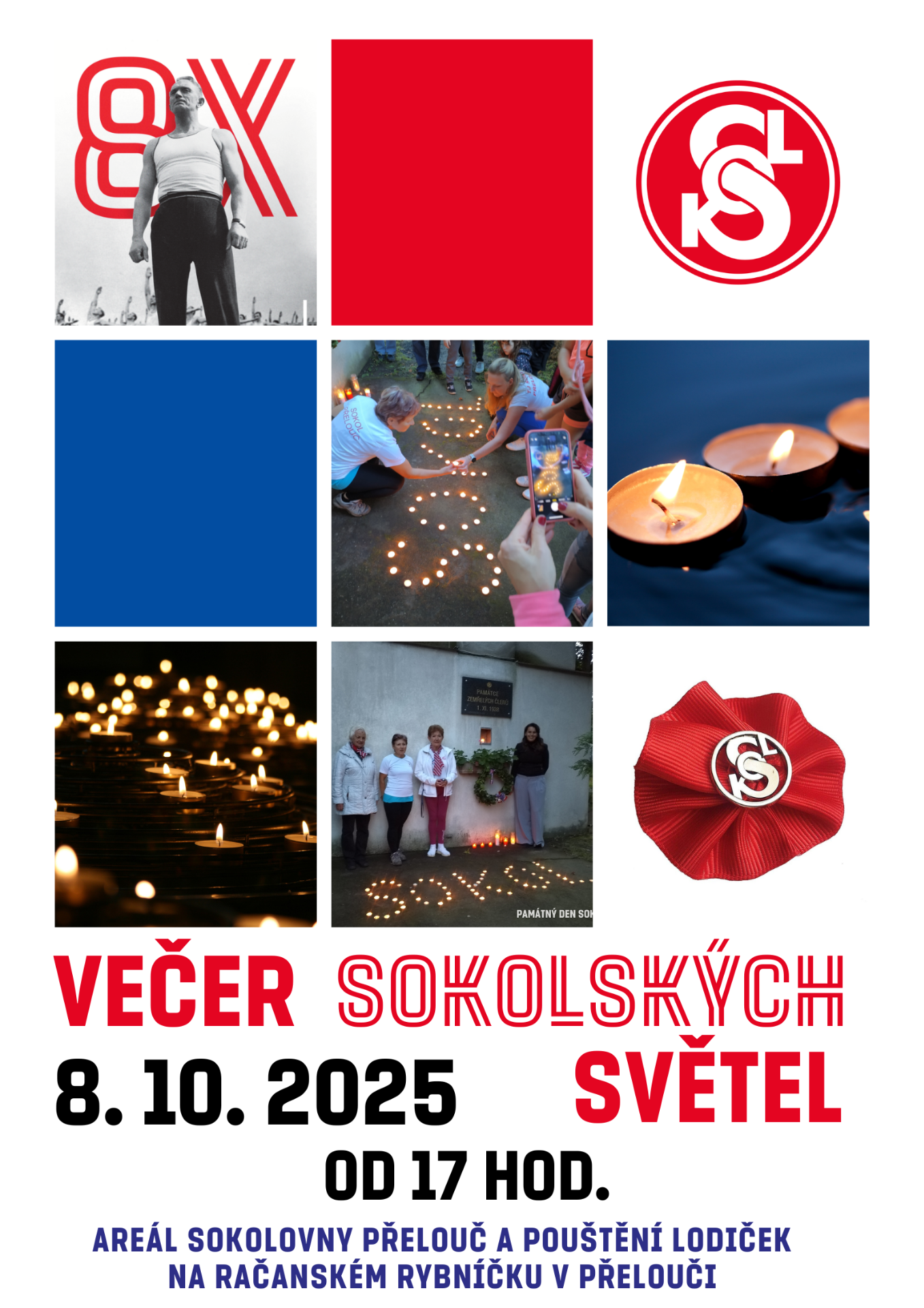 Zveme sokoly i veřejnost, dospělé i děti na Památný den sokolstva 8. října od 17. hodin. Uctíme památku hrdinných sokolů a bude následovat večer sokolských světel, kdy si vyrobíme lodičky se svíčkou a průvodem půjdeme k Račanskému rybníčku, kde lodičky pustíme po vodě. Více informací ZDE