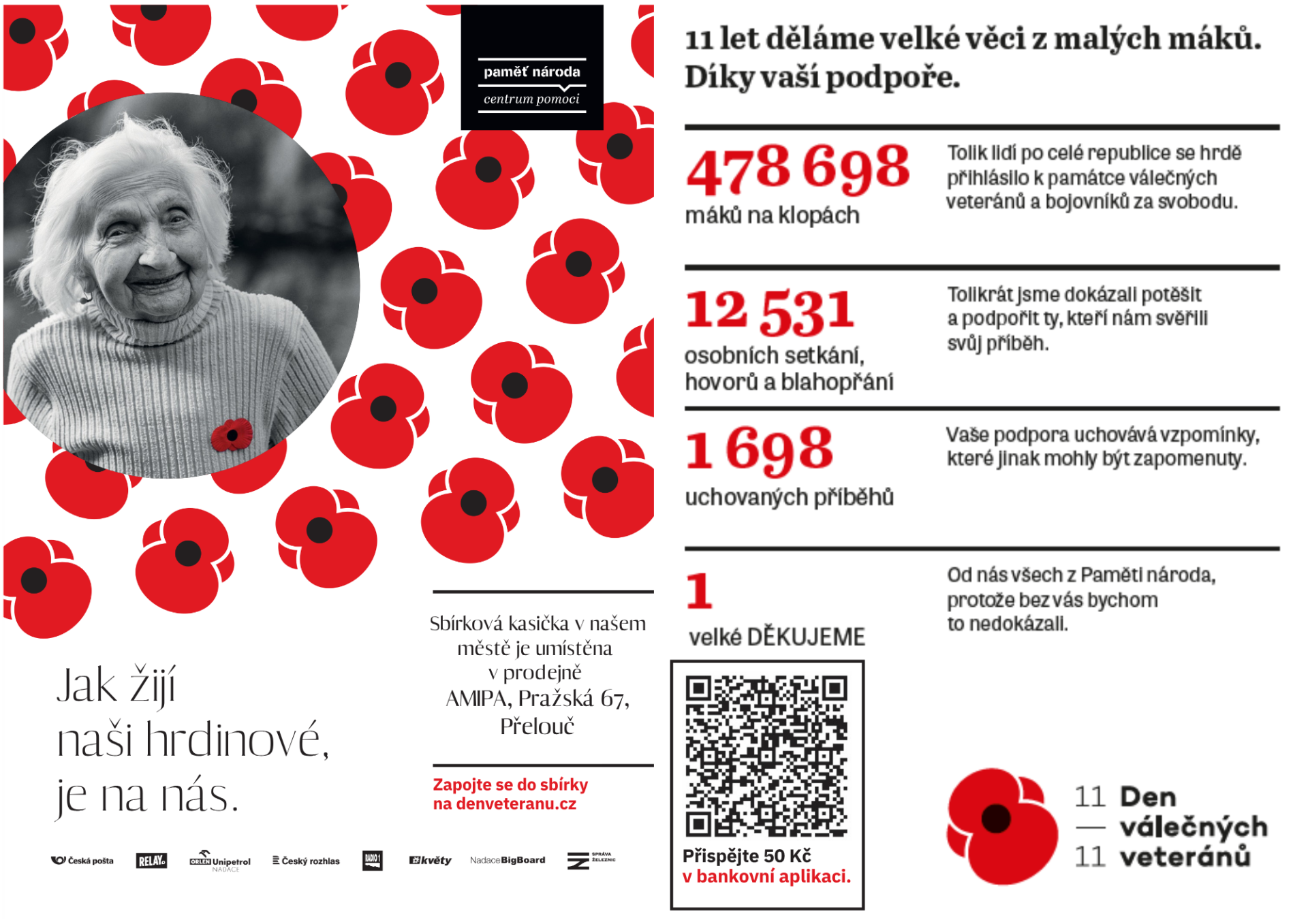 Sokolové pomáhají s nabídkou červených kvítků, které se staly symbolem odvahy a statečnosti válečných veteránů. Pro podporu dobré věci. Více info na www.denveteranu.cz
